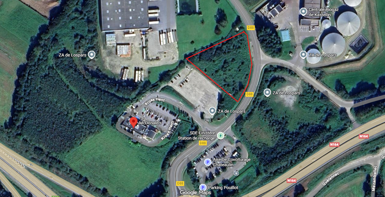 Nous vous proposons à la vente un foncier d’environ 4000m² sur la commune de Chateaulin, à proximité immédiate du McDonald’s et de l’échangeur de la voie express.