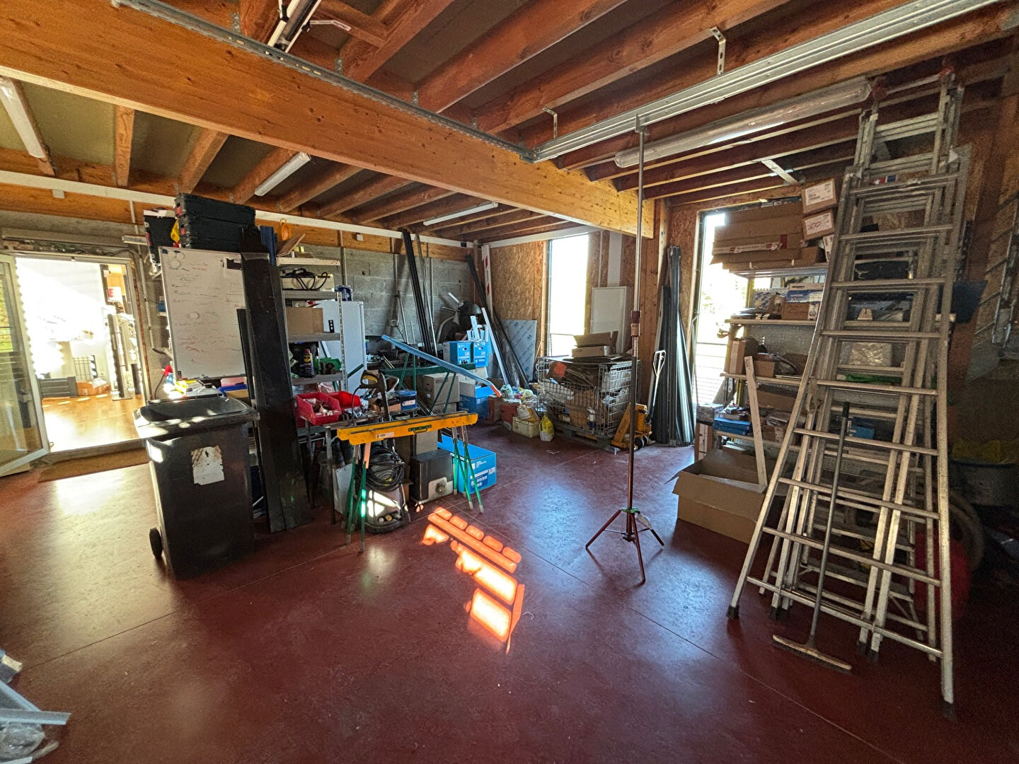 Vous retrouverez au sol environ 91m² de garage et atelier avec deux portes sectionnelles électrique. Vous retrouverez également en RDC un beau showroom lumineux pouvant servir de bureaux.