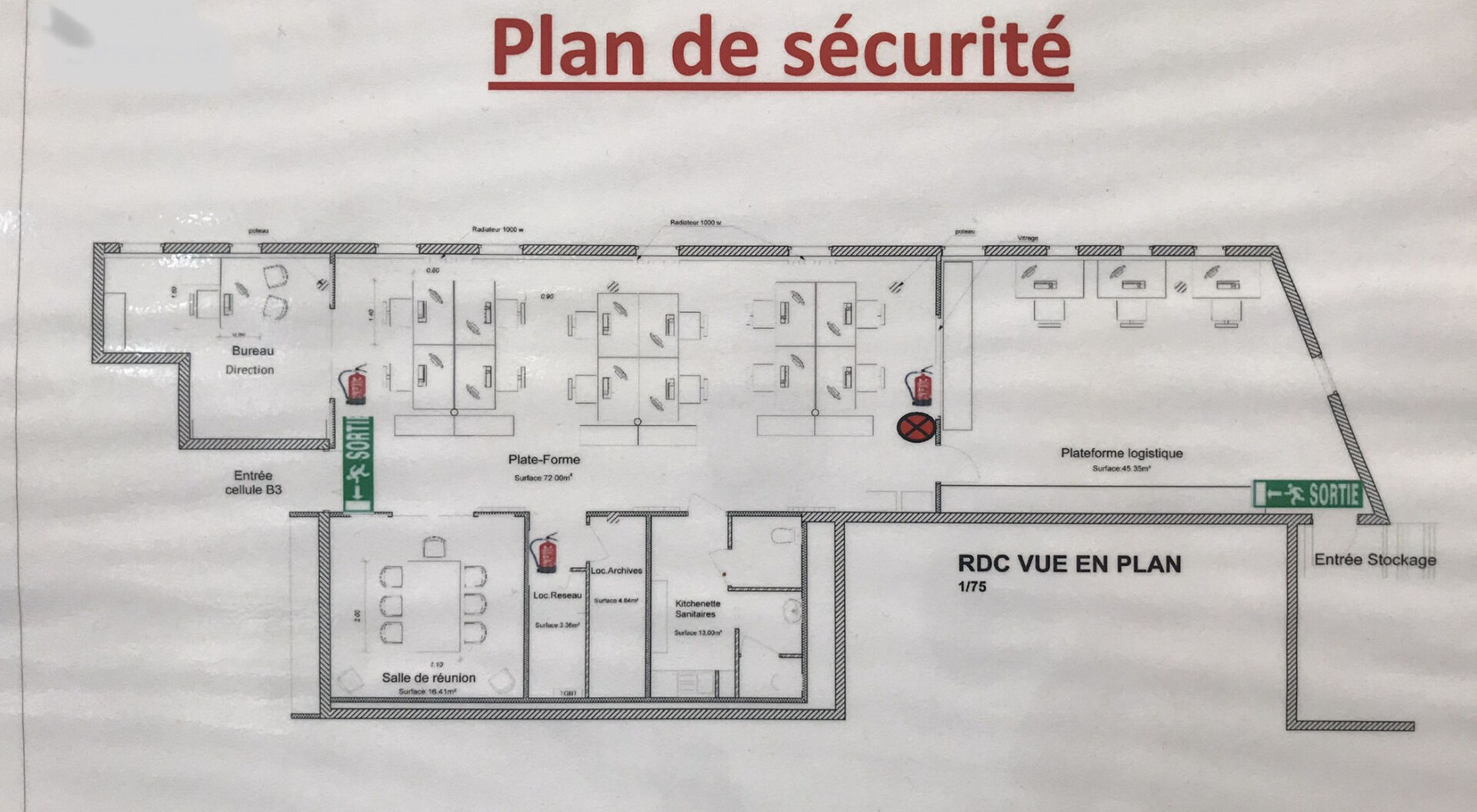– 1 grand bureau séparé ou salle de réunion de 45m2 avec porte donnant sur l’extérieur ( livraison)