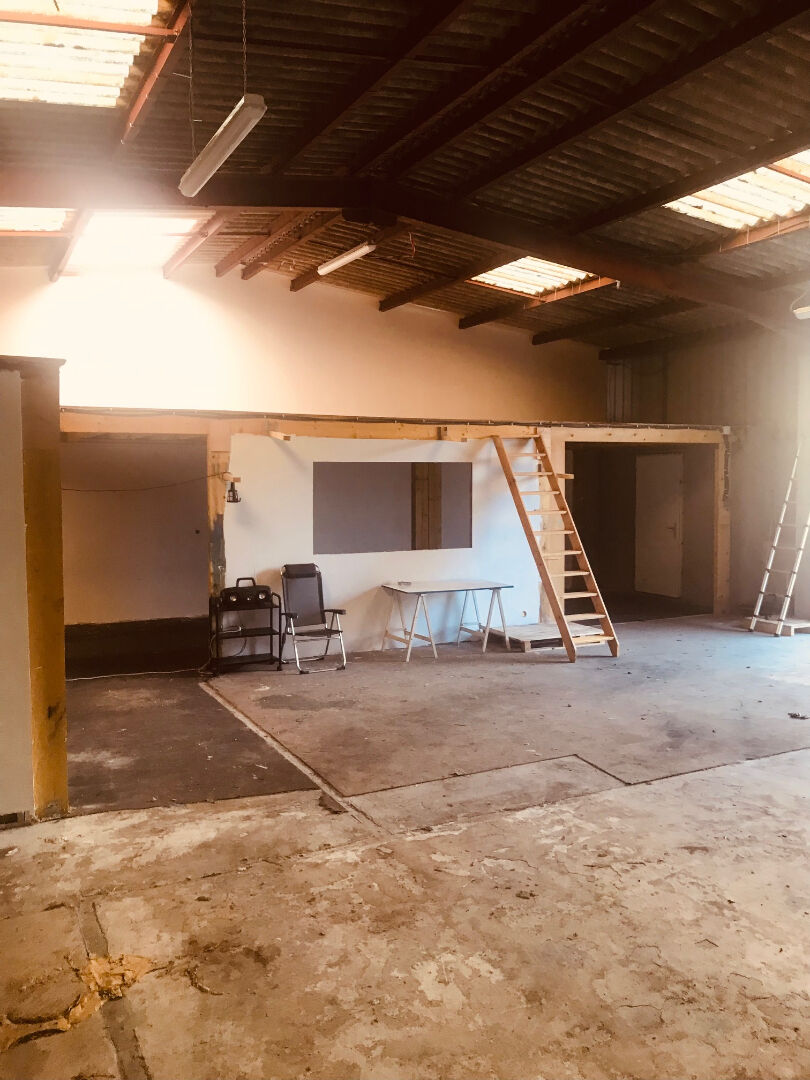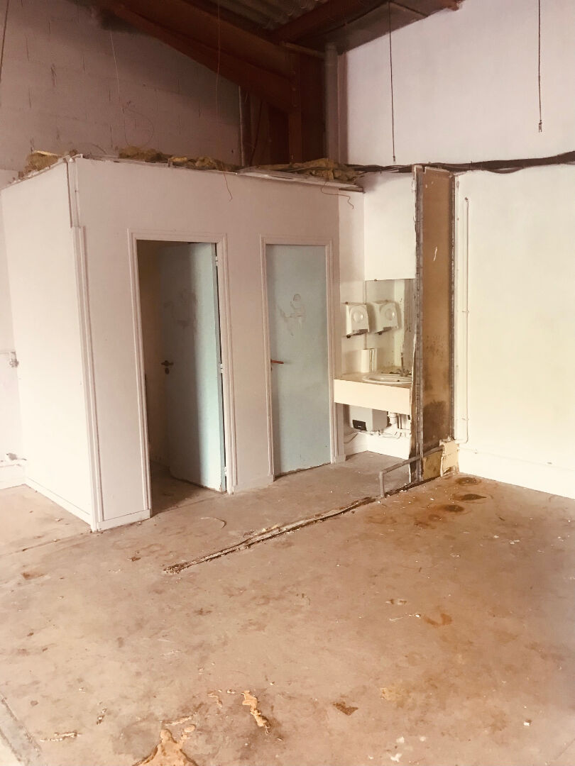 Vous retrouverez dans ce local un bureau fermé, 2 WC, un espace stockage avec porte sectionnelle motorisée ainsi qu’une mezzanine venant rajouter de l’espace de stockage.