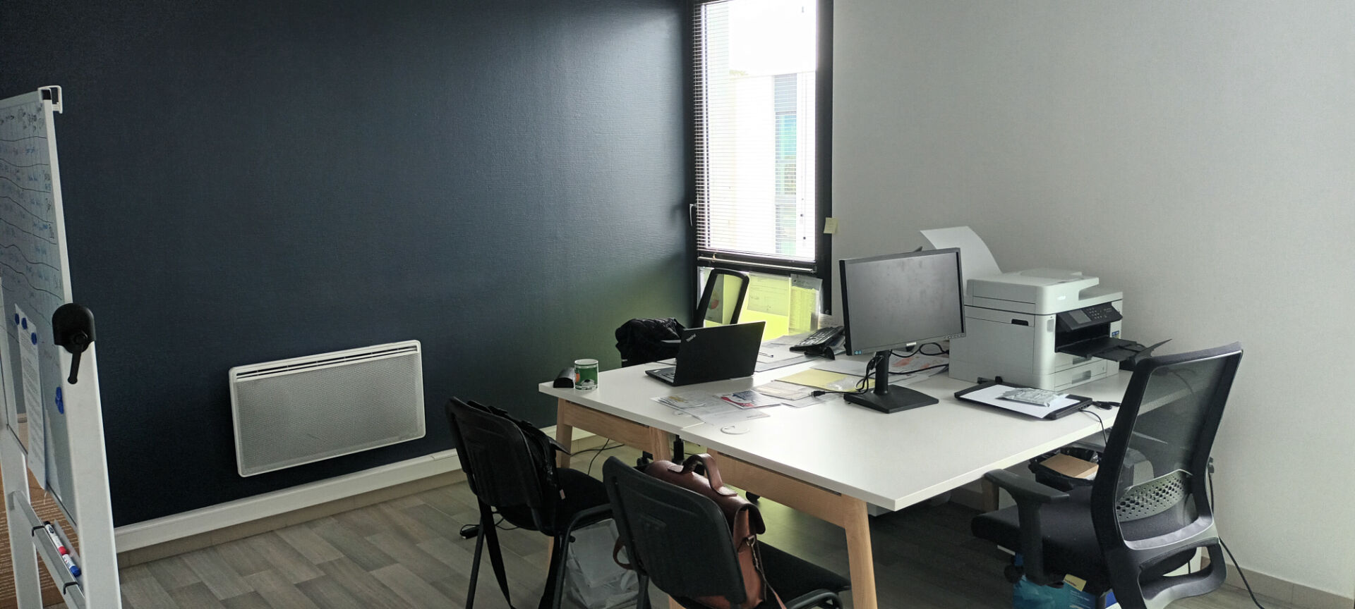 A Guipavas dans la zone de Prat Pip au 1er étage d’un immeuble tertiaire, un plateau de bureau offrant la possibilité d’un bureau de 12m² en coworking.