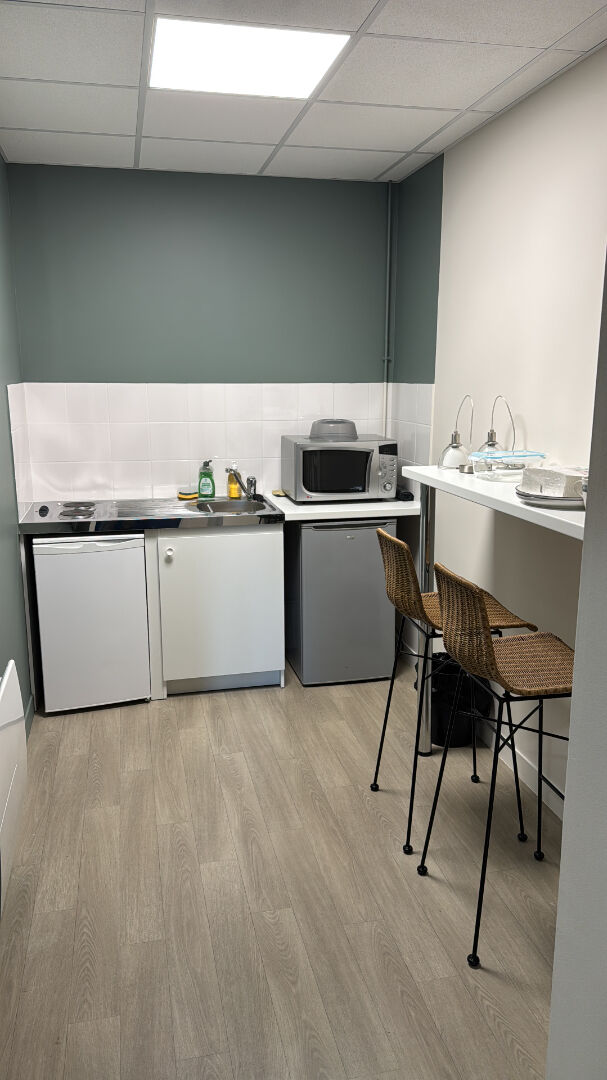 Un espace cuisine et sanitaires sont à disposition, en commun avec les autres bureaux du centre.