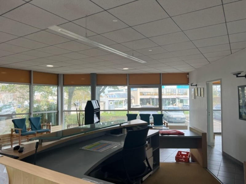 A Gouesnou au coeur de la zone de Kergaradec local d’activité de 2 400m² environ offrant de beaux volumes. Le bâtiment se répartit sur 4 niveaux dont un 1er bloc comprenant un sous-sol de 426m² utilisé pour des salles de formation et locaux professionnels, 375m² de bureaux au rez-de-chaussée et 375m² en R+1.