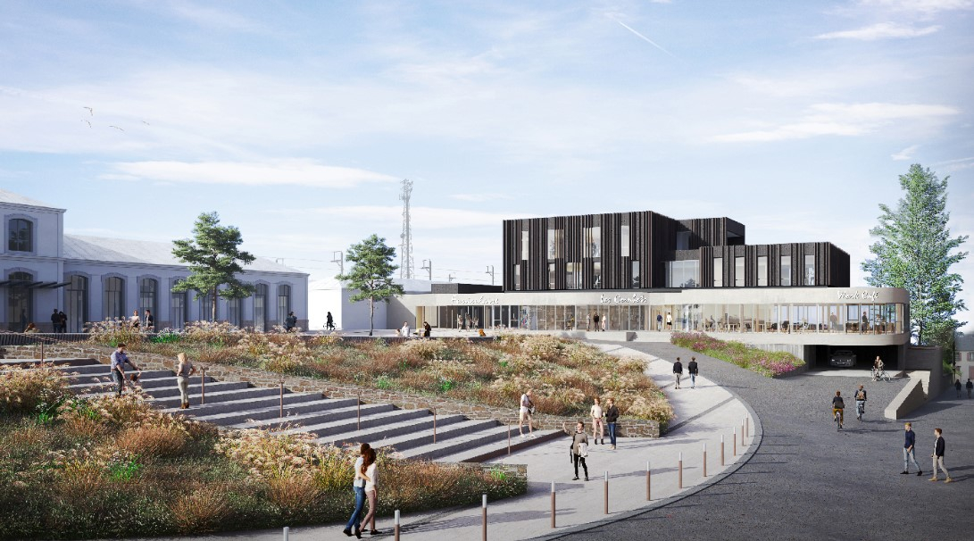 A Morlaix dans le quartier de la gare au sein d’un programme neuf en R+2 certifié HQE , répondant aux normes RE2020, à vocation commerciale et tertiaire, plateau de bureaux en R+1 de 212m².