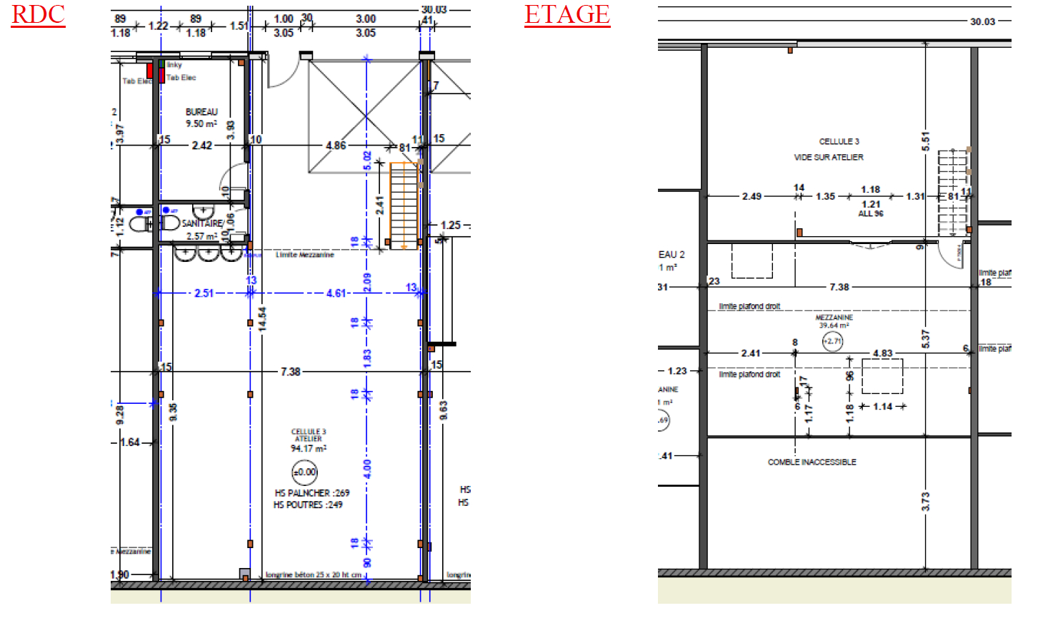 – Une surface d’atelier ? bureau et sanitaire de 107 m² et une mezzanine de 40 m²