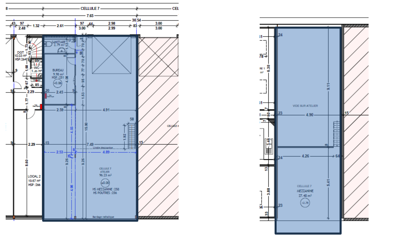 – Une surface d’entrepôt de 94 m² avec mezzanine dans le fonds du local.de 28 m²