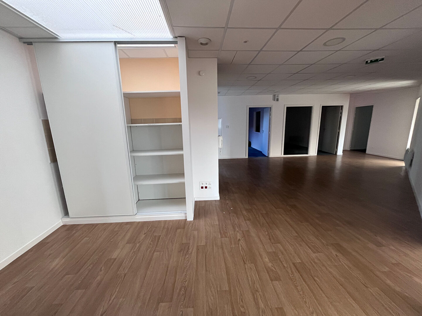 Dans un immeuble à usage professionnel, au 1er étage (ascenseur en cours d’installation), un plateau de bureaux en très bon état comprenant 11 grands bureaux, un espace archives, une salle de pause avec cuisine, sanitaires PMR.