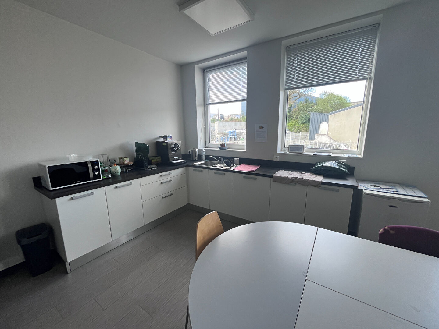A LOUER, Brest, Zone de Kergonan, au sein d’un bâtiment tertiaire, au rez-de-chaussée, un plateau de bureaux de 300 m², comprenant un accueil, 5 bureaux doubles, une salle de réunion, un open-space, une cuisine – salle de pause et sanitaires (non PMR).